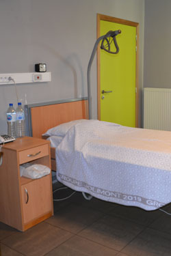 Nous mettons bien sûr à disposition de confortables chambres à un lit ou deux lits avec toutes les commodités: douche, W.-C. particulier, TV, téléphone, armoire spacieuse, barre d'appui, système d'appels, …