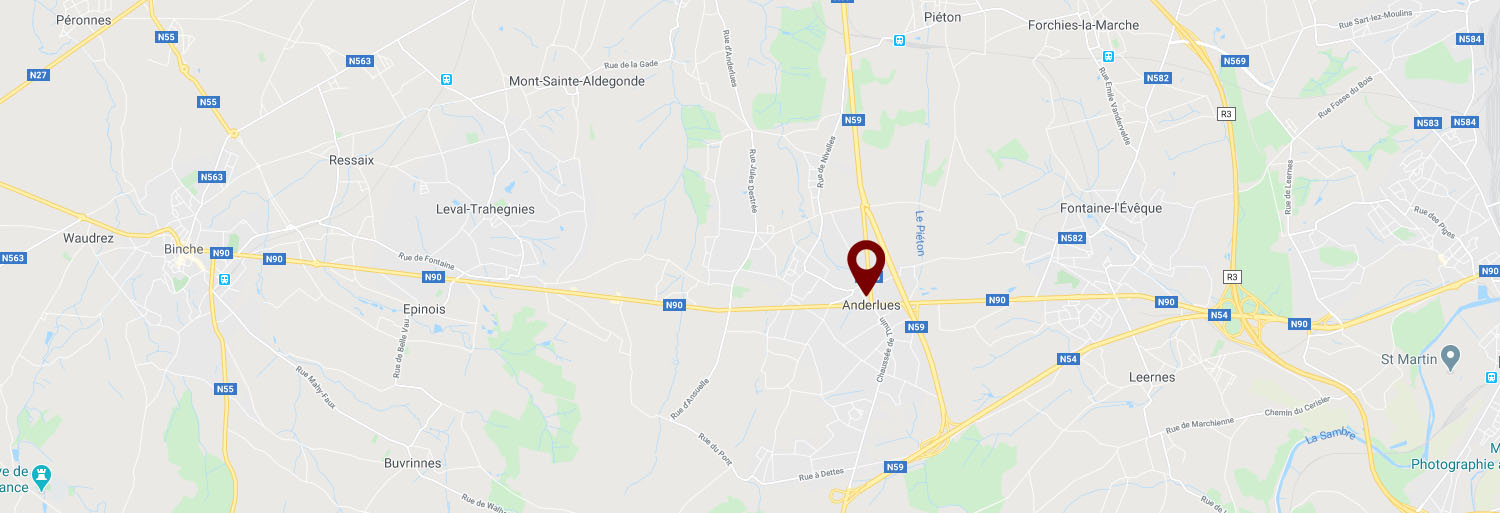 Notre maison est située au centre-même de la commune d'Anderlues, au lieu dit "Carrefour du Roi des Belges".